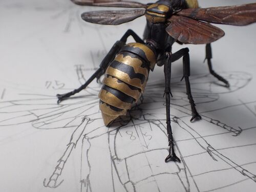自在置物 大雀蜂〈女王〉完成18金と赤銅の象嵌で表現。象嵌だと境目がはっきりする表現になるのでとても工芸的な仕上がりにあるよね。 pic.twitter.com/Nuim6uXpK9— 満田晴穂 (@haruomitsuta) 2020年10月12日 赤銅の色が着かない部分を研ぎ直し中な煮色前の…